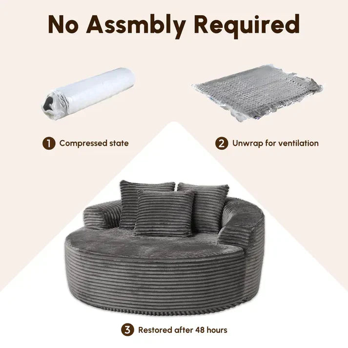 NO ASSEMBLY NECESSARY: With our no-installation boneless sofa, you no longer have to worry about the hassle that comes with installing a sofa. Simply unpack all the pieces and return them to their elasticity by tapping and waiting. Full recovery can take around 72 hours. Enjoy the ease of no assembly required!